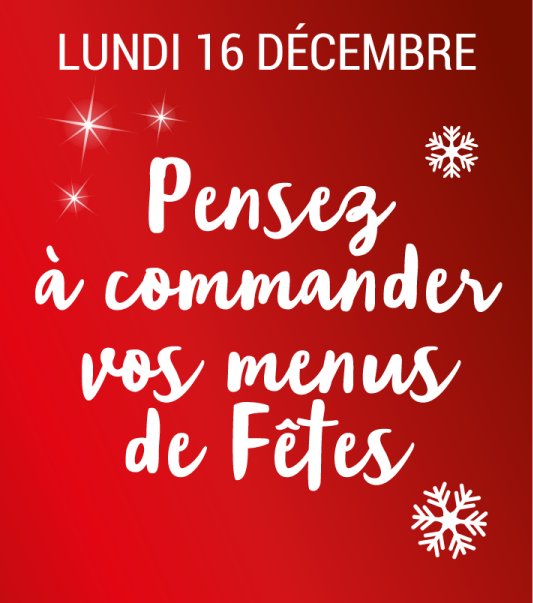 date limite de commande pour noel: 19/12 à 12h et pour le nouvel an: mardi 26/12 à 12h. Pour vos plateaux de fruits de mer : jusqu’au vendredi 27 décembre 12h